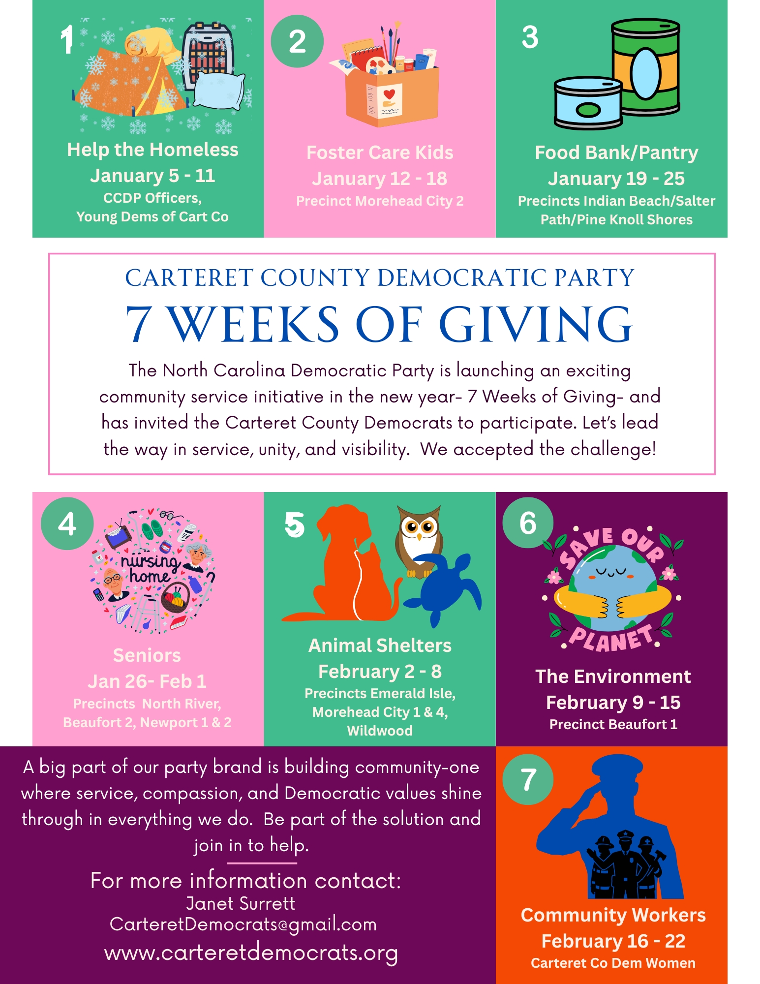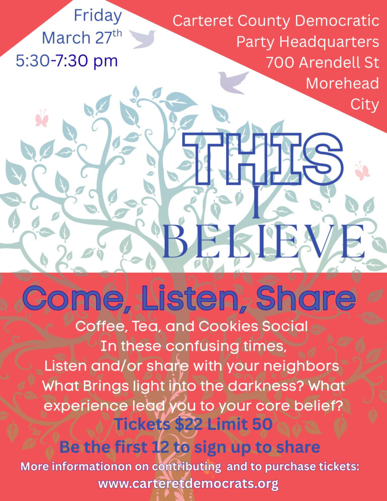 The Carteret County Democratic Party is so grateful for the generous gift of time and talent of Jessica and Dustin Diaz of Diaz Marketing. They used pictures from the various rallies and events we have had over the past few months depicting Faces of Democracy.