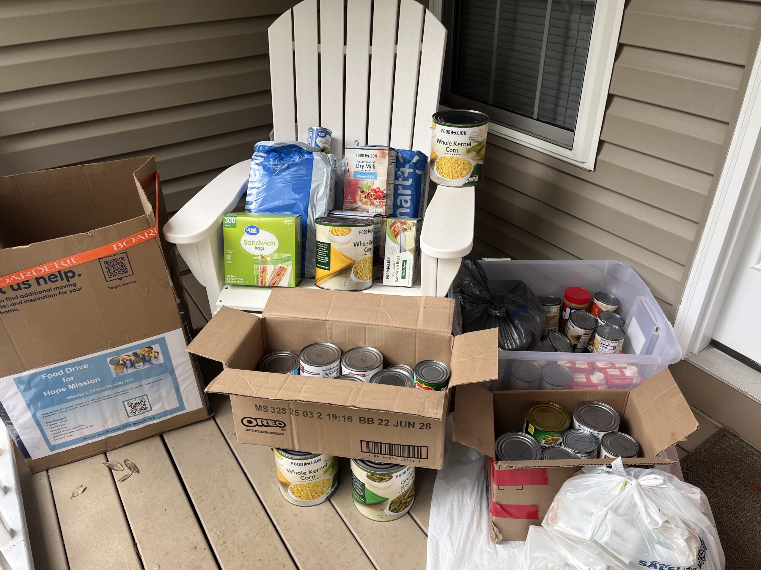 The first week of the project opened with efforts by the Carteret County Democratic Officers and Young Democrats to support the homeless population in the area. The groups coordinated with Pastor Joseph Park of St. James United Methodist Church in Newport, who visits his local homeless  community each weekend. He has worked to assist this community, the county’s largest homeless camp, for the past three years. Accompanying him are members of his own church, members of other area churches, and citizens of the general community with a heart to serve.