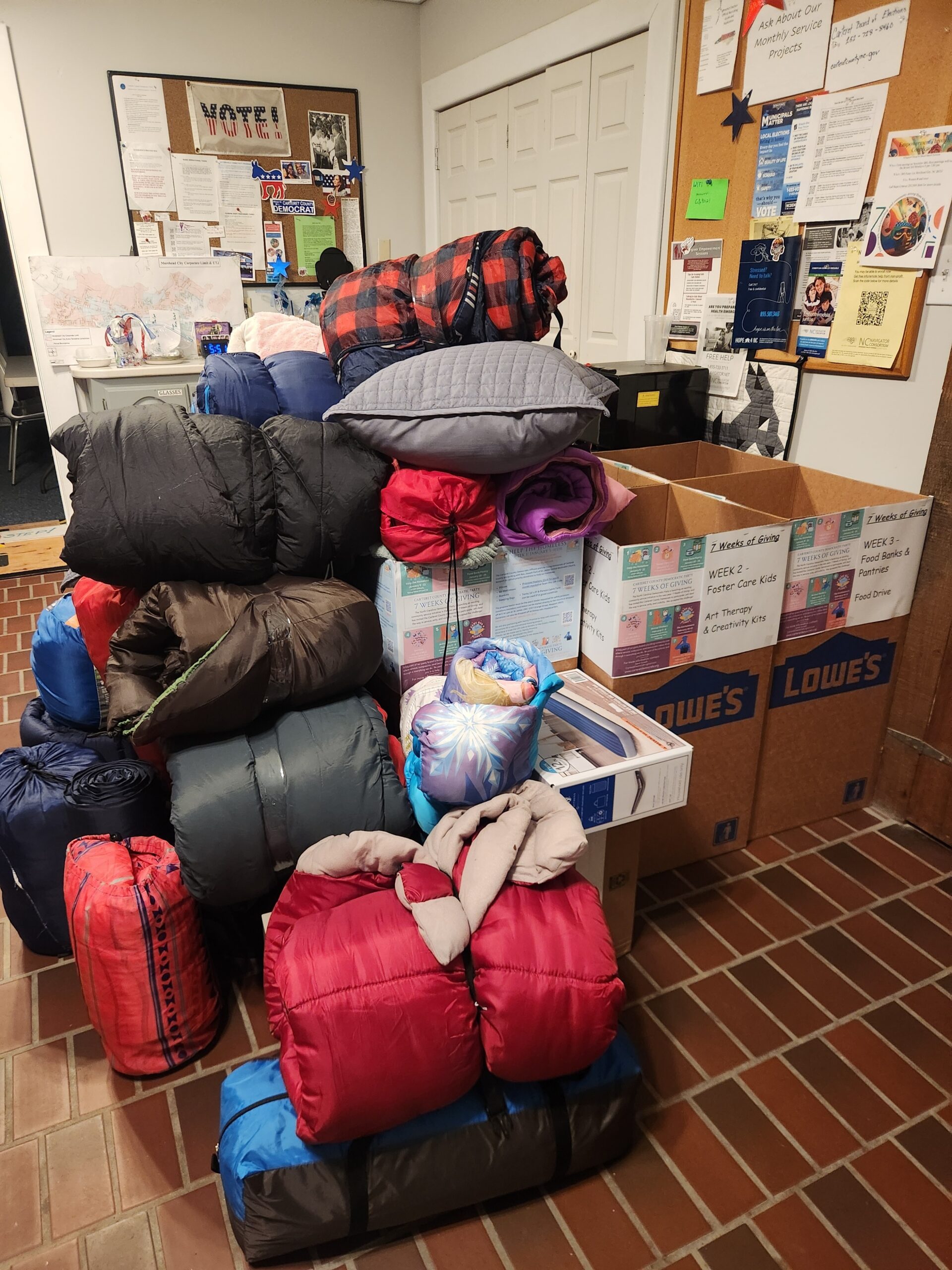 As 2026 opened, a statewide community service initiative was launched by the North Carolina Democratic Party, joined by the Carteret County Democratic Party. The initiative, known as the 7 Weeks of Giving, focused on a unique and local community service project each week for seven consecutive weeks, individual outreaches led by a different precinct, or team of precincts, within the county. Precincts were challenged to take the lead for one of the seven weeks, plan and implement a community service project, coordinating with local organizations to access and meet needs. People in all precincts donated items for all the weeks organized by other precincts, integrating each smaller project into one overall collaborative effort. Thirteen precincts, as well as Carteret County Democratic Officers, Young Democrats, and Carteret County Democratic Women, rose to the challenge, providing the opportunity to transform party values into action. “In communities across North Carolina, people are feeling the strain of rising costs, underfunded public services, and widening gaps in support, said Roy Surrett, Chair of the Carteret County Democratic Party. “This effort is about Carteret County Democrats showing up for one another, working in our community, and meeting these challenges with compassion, cooperation, and meaningful action.” Throughout the winter months during which the initiative took place, volunteers utilized the time to build relationships within their community, spread goodwill throughout the length of the county, and invite engagement and new member involvement.