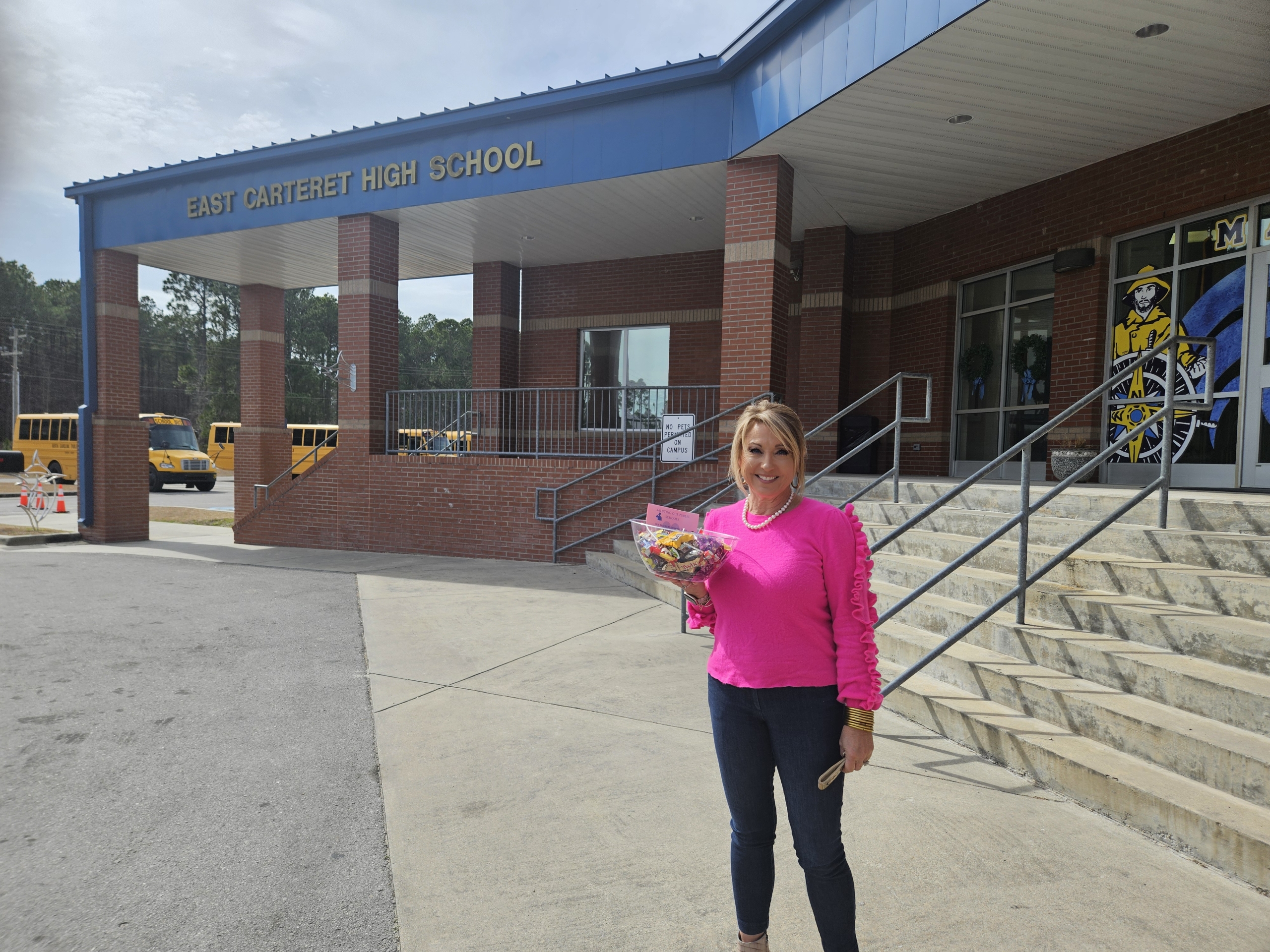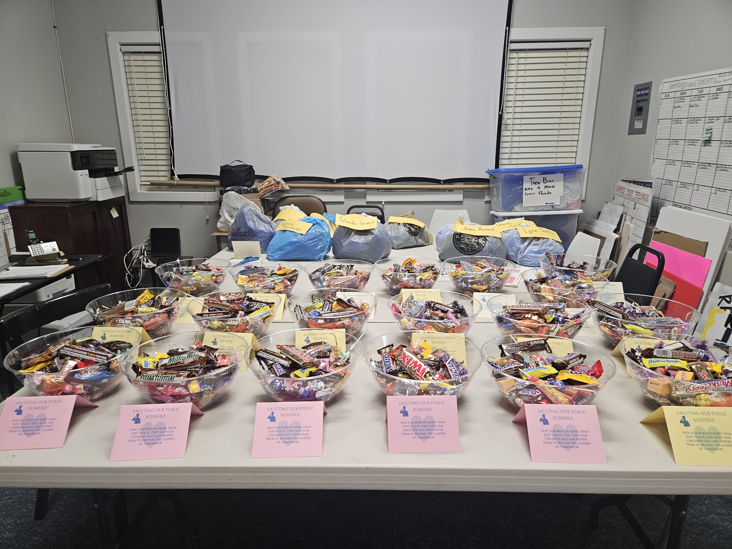 The Carteret County Democratic Women chose to say thank you to the county’s public school teachers for their daily dedication and commitment to tomorrow’s leaders. The women put together candy baskets for all eighteen public schools in the district, delivering them just as Valentine’s Day arrived.